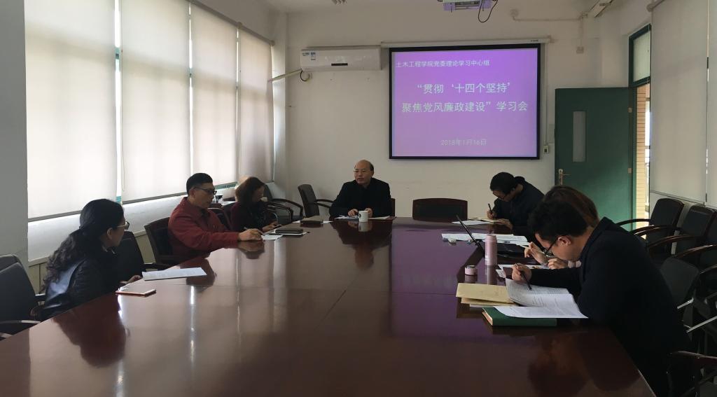 1月16日上午,yl23411永利集团党委中心组在综合教学楼群C5-406会议室召开“贯彻‘十四个坚持’,聚焦党风廉政建设”学习会。学院全体院领导、科级干部、行政教工支部书记与会,学习会由学院党委书记张灯主持。