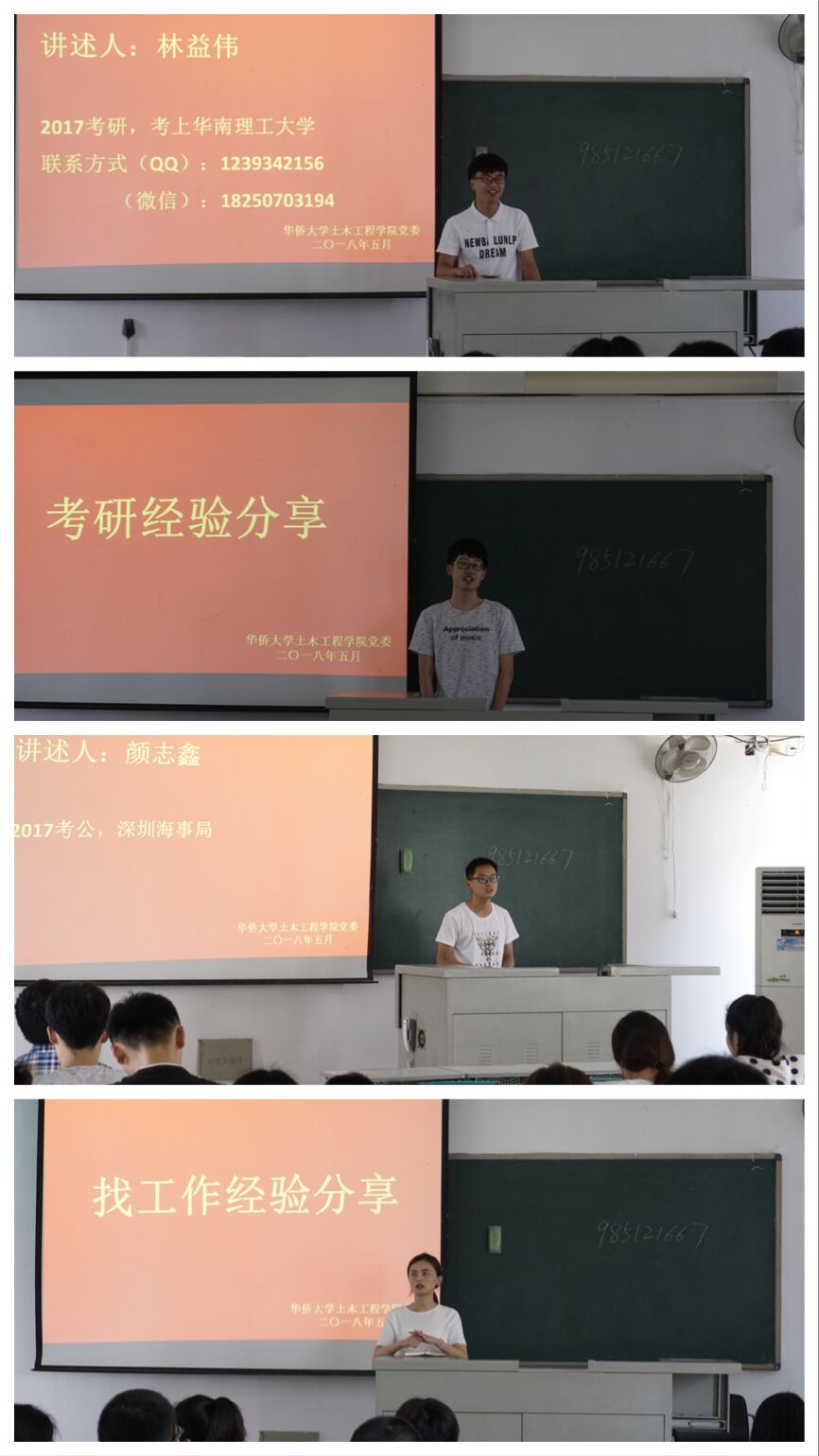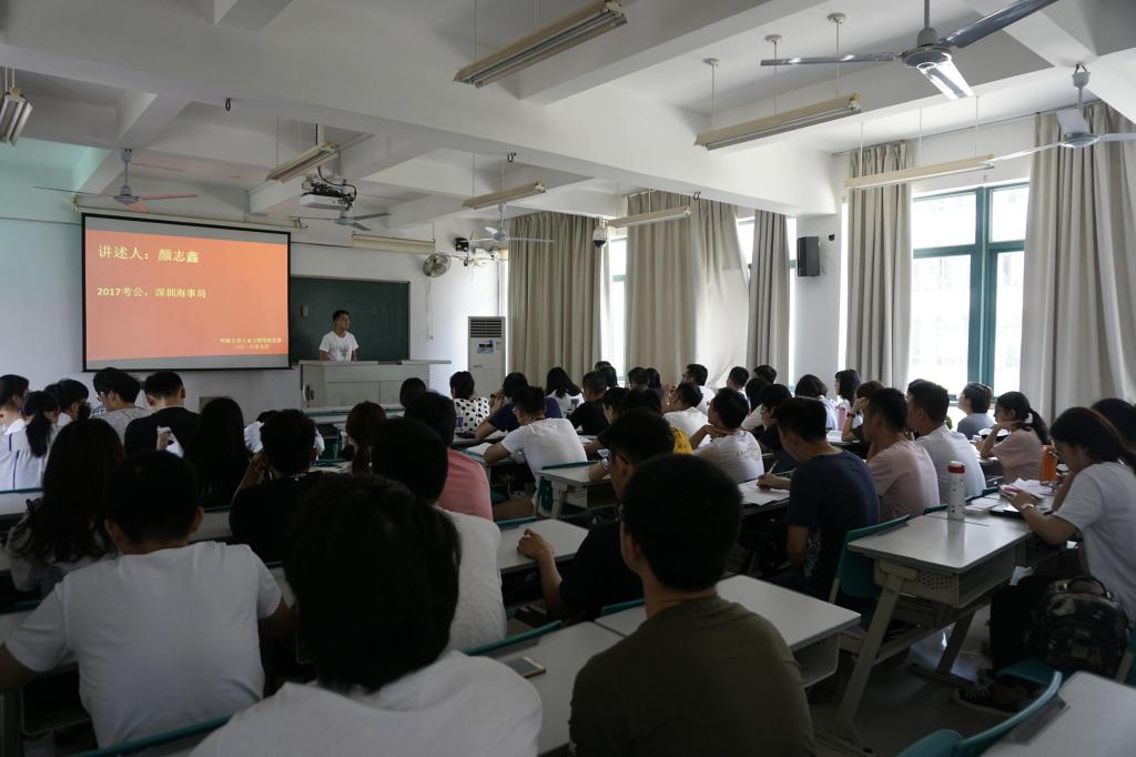 交流会上,四位党员首先分别从如何处理好学习与生活的关系、专业课的学习方法以及人生道路的规划等几方面问题作了精彩发言。接着,他们分享了考研、考公以及找工作等三方面的经验。成功考取985高校的解鹏、林益伟两位同志分别就自身考研经历进行了分享,提出了考研准备时期各个阶段的规划和复习建议;成功考上深圳海事局的颜志鑫同志分享了国家公务员考试经历,为准备考公务员的同学指明了准备方向;郭胜芳同志从暑假实习、简历投递、岗位选择等三方面给打算找工作的同学提出建议。