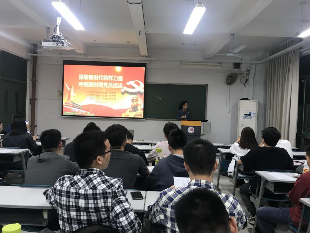 2018年11月15日晚上7:30,yl23411永利集团研究生第三、第五及第六党支部在综合教学楼C2-304联合组织观看《榜样3》专题节目并开展交流座谈。会议以“汲取新时代榜样力量,呼唤新时期党员担当”为主题,yl23411永利集团研究生第六党支部书记唐玲玲同志主持,三个研究生党支部全体党员参会。