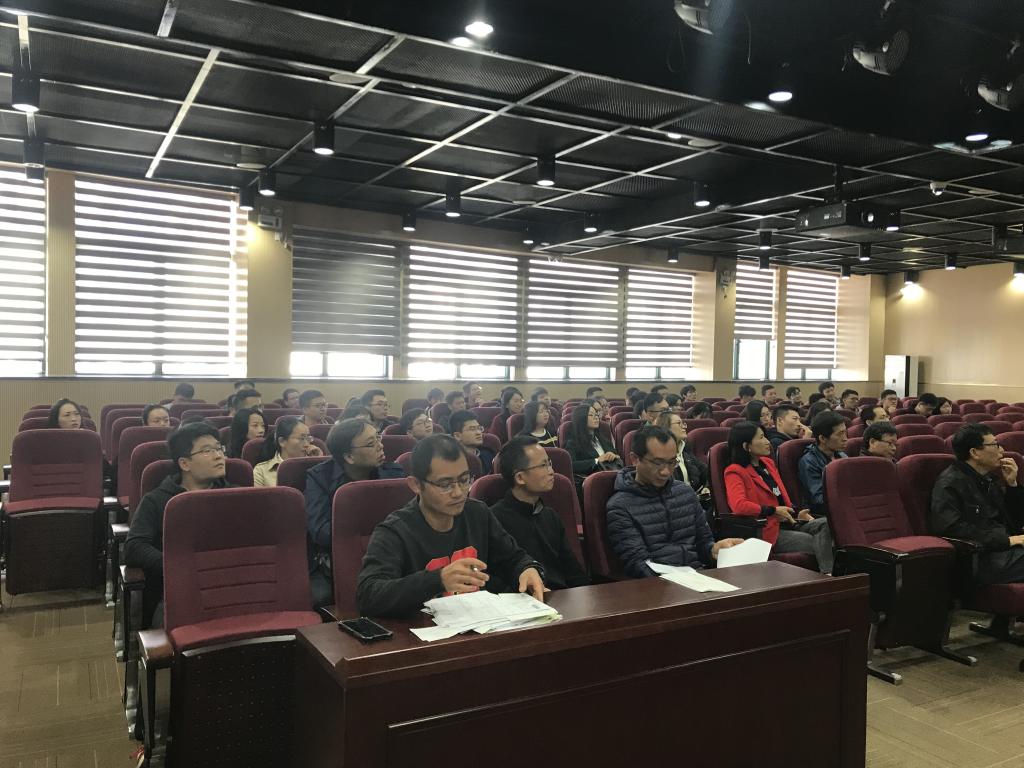 教师党员和研究生党员在学科实验大楼510报告厅观看现场