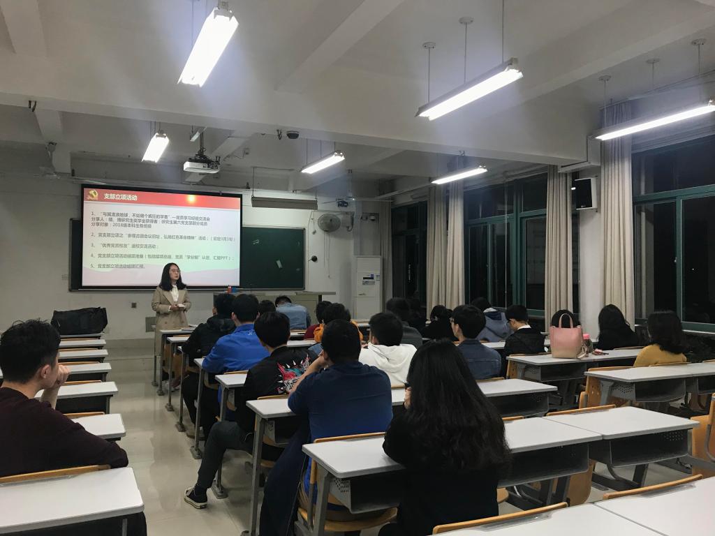 随后,唐玲玲同志向党支部成员介绍了2018-2019学年党支部工作“立项活动”本学期的工作内容及安排,详细讲解了拟在2018级本科班级开展的“引领学风建设——与其流浪地球,不如做个疯狂的学者”党员分享交流会及支部日常活动安排。同时,唐玲玲同志和赵淑媛同志动员入党积极分子,并号召所有支部同志积极参与、认真开展、充分发挥好研究生党员的示范带头作用,以身作则,共同推进新学期支部立项活动的实施并做好结项工作。最后,大会就本学期拟参加党校学习的入党积极分子进行了推荐。
