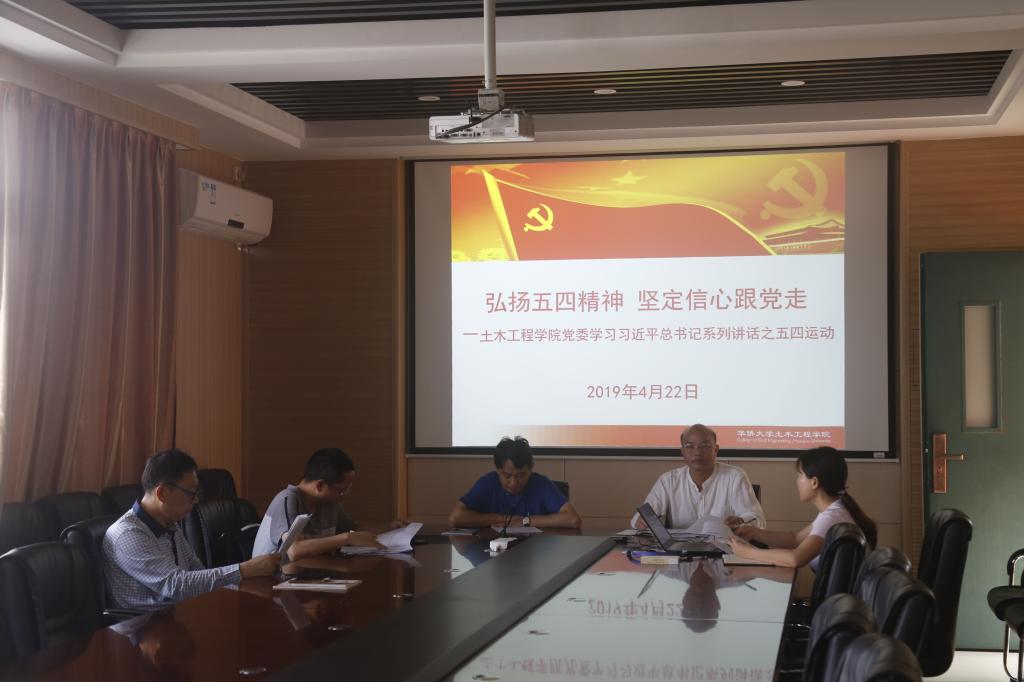 2019年4月22日上午,yl23411永利集团党委在综合教学楼C5-406会议室召开“弘扬五四精神,坚定信心跟党走”——习近平总书记系列讲话之五四精神学习会,会议由学院党委书记张灯主持。