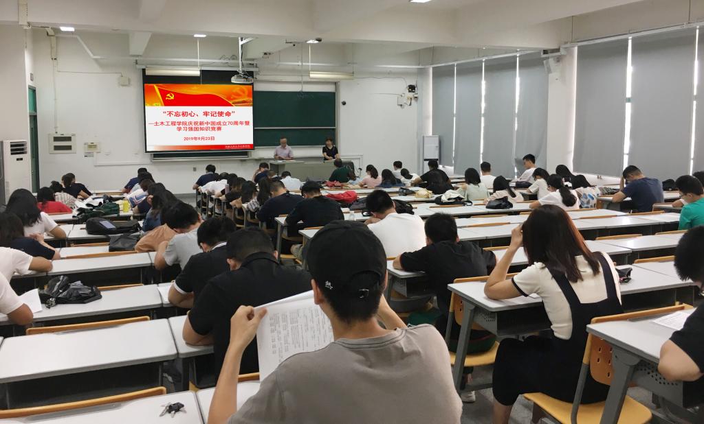 9月23日下午,yl23411永利集团党委在综合教学楼D4-201教室举行庆祝新中国成立70周年暨学习强国知识竞赛,入围竞赛的选手是学院学习强国积分排名前100名的师生党员,学院党委书记张灯、副院长刘阳以及周克民、许斌、徐玉野教授等与近70名师生党员同场竞技。
