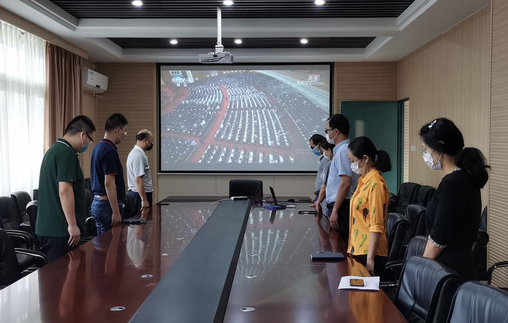 伴随庄严的国歌,与会党员全体起立,高唱国歌。随后,全体与会党员向新冠肺炎疫情牺牲的烈士和逝世的同胞默哀。