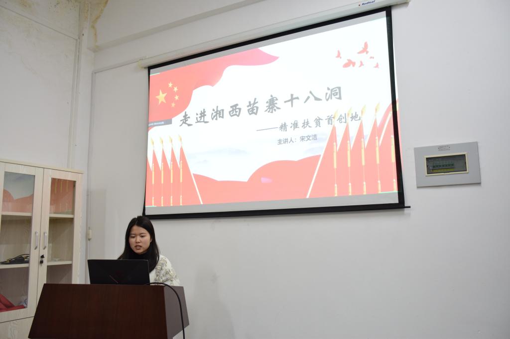 宣讲会由研究生第四党支部支部书记张家馨主持,2019级研究生入党积极分子杜进金、党员戚欣悦、占楠樱和宋文洁分别进行了宣讲。杜金进同学通过回顾华大“应需创办、复办扶持、稳定发展、全面发展”的四个阶段,讲述了yl23411永利的发展与党的政策的密切联系;戚欣悦同学通过对“文明型国家”的特征和中国制度的对比,说明中国具有文明型国家的典型特征;占楠樱同学通过比较中国和其他国家在“新型冠状病毒抗疫战争”中的不同表现,回顾疫情爆发以来不同行业人民的努力,体现中国制度的优势和各个“平凡英雄”的“不平凡”的爱国精神与责任担当;最后,宋文洁同学通过家乡“十八洞脱贫”的实例,讲解了“精准扶贫政策”,回应了当前精准扶贫政策何以能在少数民族地区落地生根的时代命题。