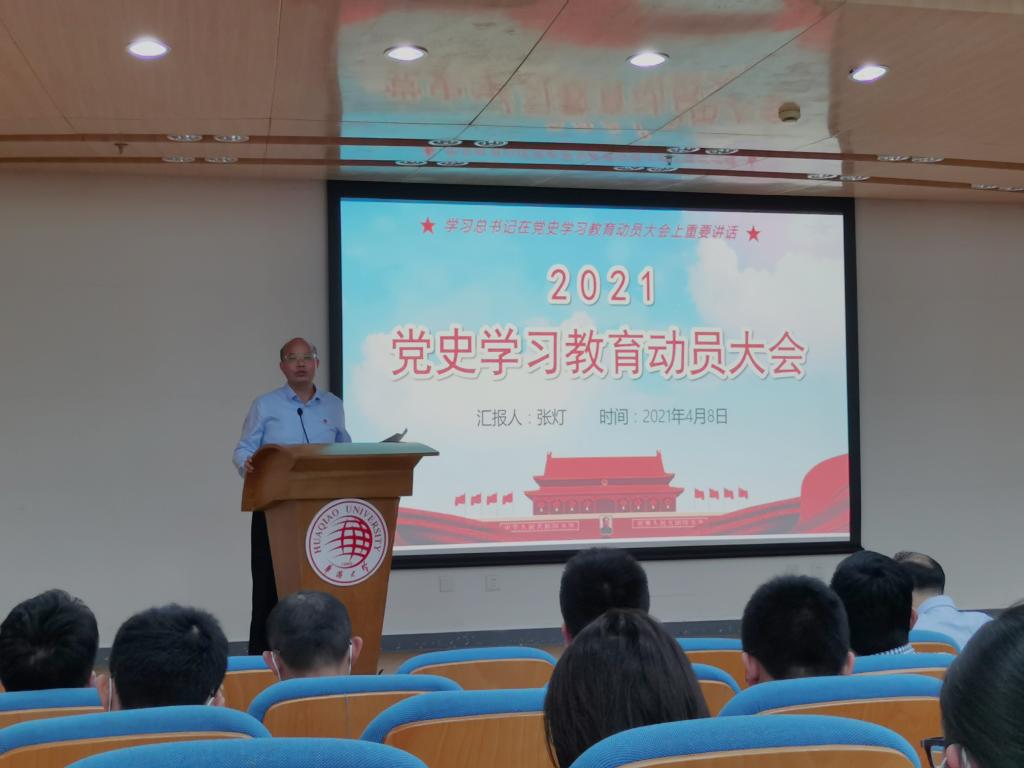 学院党委书记张灯传达学校党史学习教育动员会及其文件精神,结合党史学习的重大意义、重点内容以及工作要求作了动员讲话。他指出,在全党开展党史学习教育,是党中央立足党的百年历史新起点、统筹中华民族伟大复兴战略全局和世界百年未有之大变局、为动员全党全国满怀信心投身全面建设社会主义现代化国家而作出的重大决策。要领会马克思主义如何改变中国和世界,胸怀“两个大局”,树立大历史观,深刻领会党的性质宗旨,大力发扬红色传统、传承红色基因,从党史中汲取正反两方面历史经验,坚定不移向党中央看齐。张灯强调,要提高思想站位,立足实际,守正创新,高标准高质量完成学习教育各项任务。