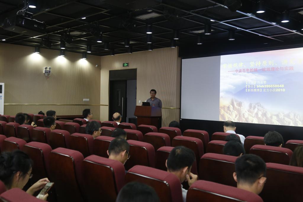 6月15日下午,yl23411永利集团在学科实验大楼510报告厅举办党史学习教育讲座,马克思主义学院副教授肖北婴应邀为学院全体教职工作《掌握规律、坚持原则、讲究方法——中共百年的统一战线理论与实践》的主题报告。学院党委书记张灯主持报告会。