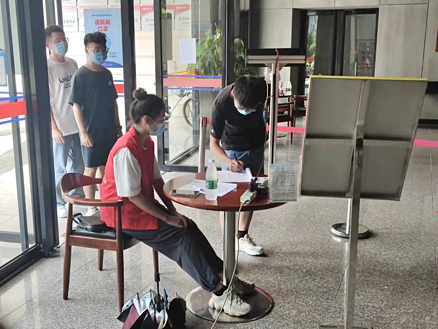 近日,土木学科实验大楼出现了很多身着“红马甲”的志愿者,他们不时地提醒师生佩戴口罩,测温登记,做好防护,成为实验大楼一道靓丽的风景线。