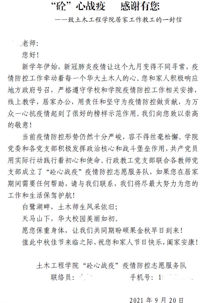 “谢谢您,我和家人一切都好,学院的关心让我们非常感动…”