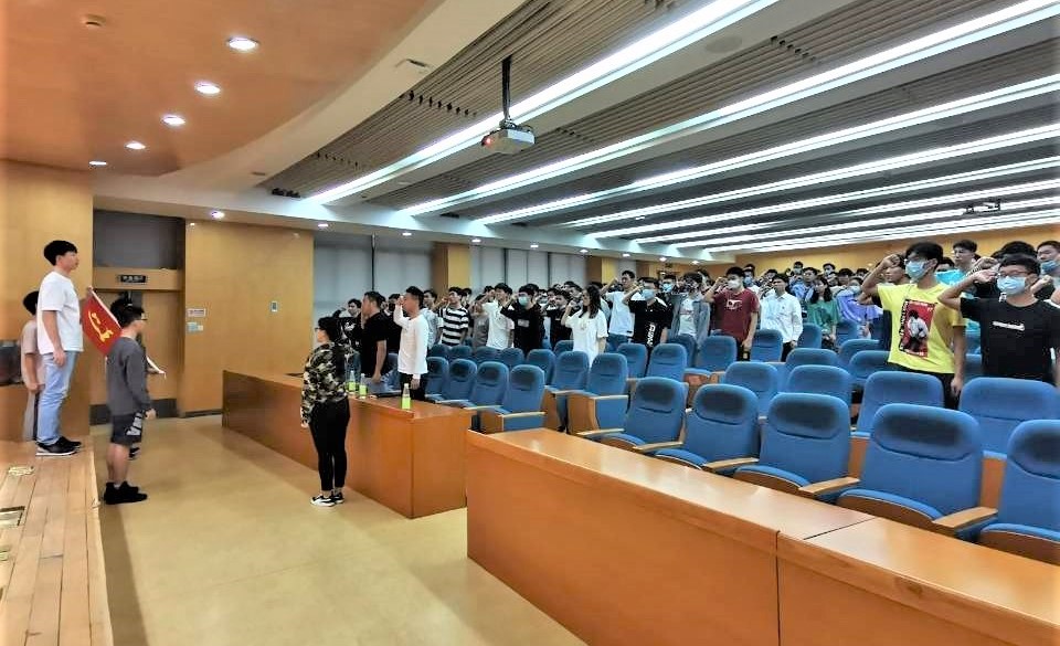 最后,全体学生党员面向党旗,高举右手,重温入党誓词,庄严宣誓——“我志愿加入中国共产党,拥护党的纲领,遵守党的章程……为共产主义奋斗终身,随时准备为党和人民牺牲一切,永不叛党!”