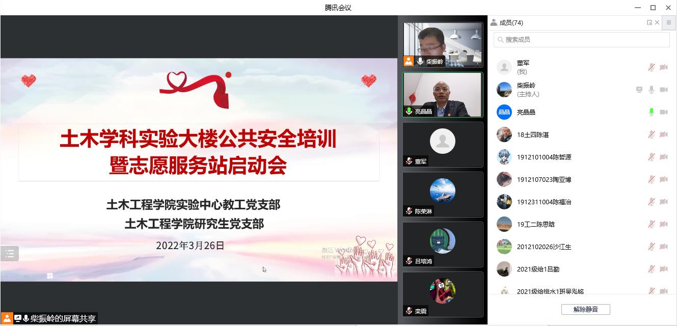 3月26日下午,土木学科实验大楼公共安全党员志愿服务站(以下简称“志愿服务站”)启动仪式暨第一次培训会顺利举行。学院党委书记张灯、党委组织员董军、实验中心教工党支部委员、全体学生党支部书记及志愿服务站全体志愿者人与会,实验中心教工党支部书记、实验中心主任柴振岭主持会议。