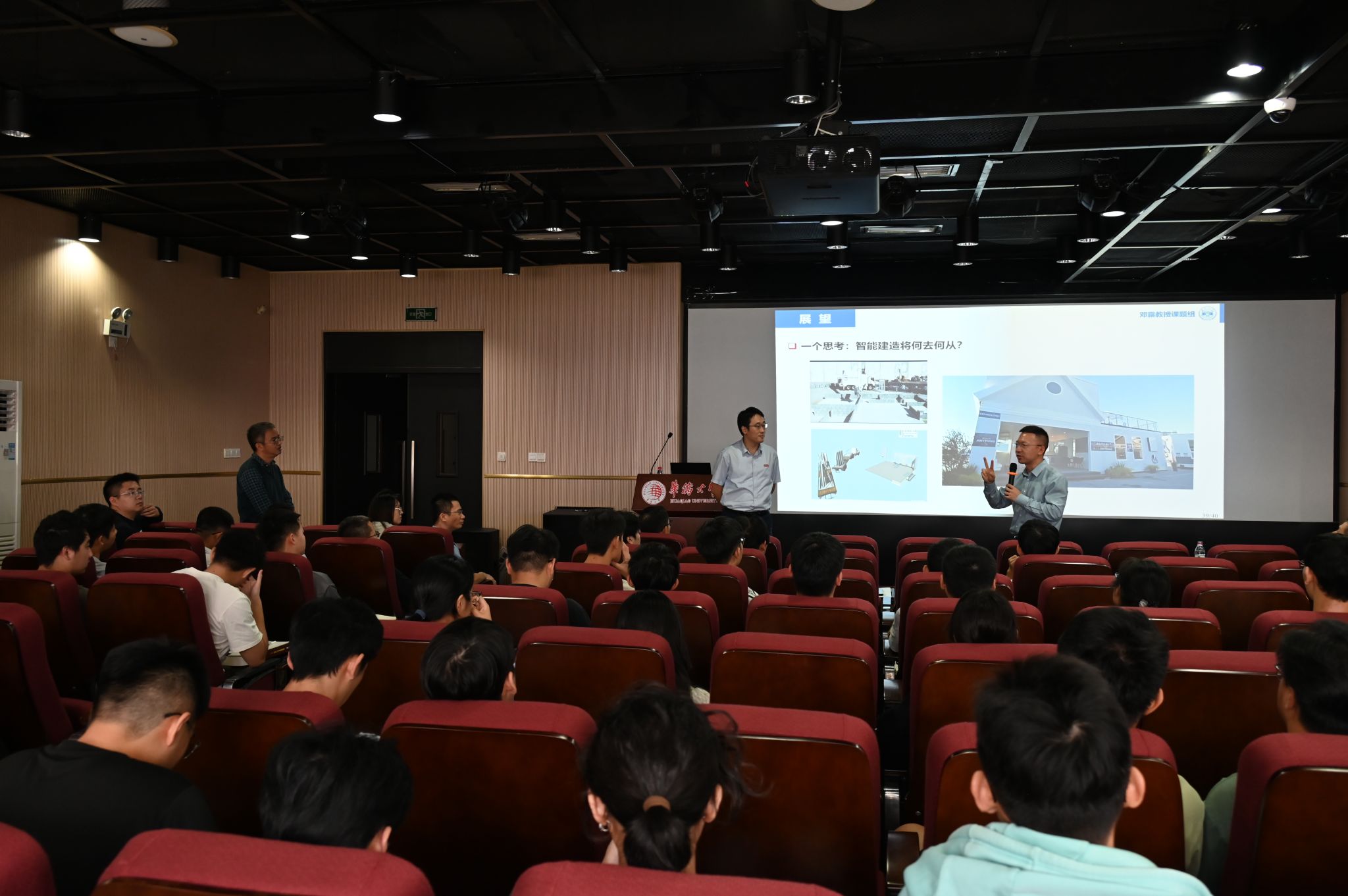 讲座中,邓露教授还与现场师生进行了深入交流,解答了师生提出的智能建造相关技术研究、学科交叉和研究团队建设等方面的问题。