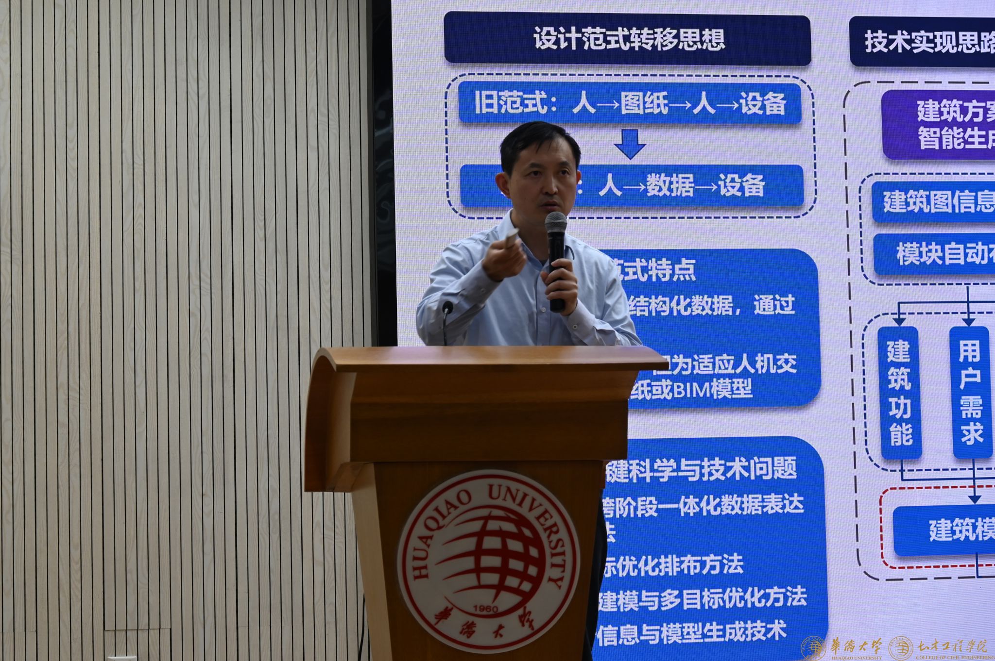 刘界鹏教授介绍了模块化建筑的概念、应用发展趋势和模块化建筑设计-制造一体化中亟需解决的关键科学技术问题,分享了其研究团队在模块化建筑数字化表达、模块排布方案智能生成、结构智能分析与优化以及模块箱体智能深化设计等研究创新和典型工程应用。