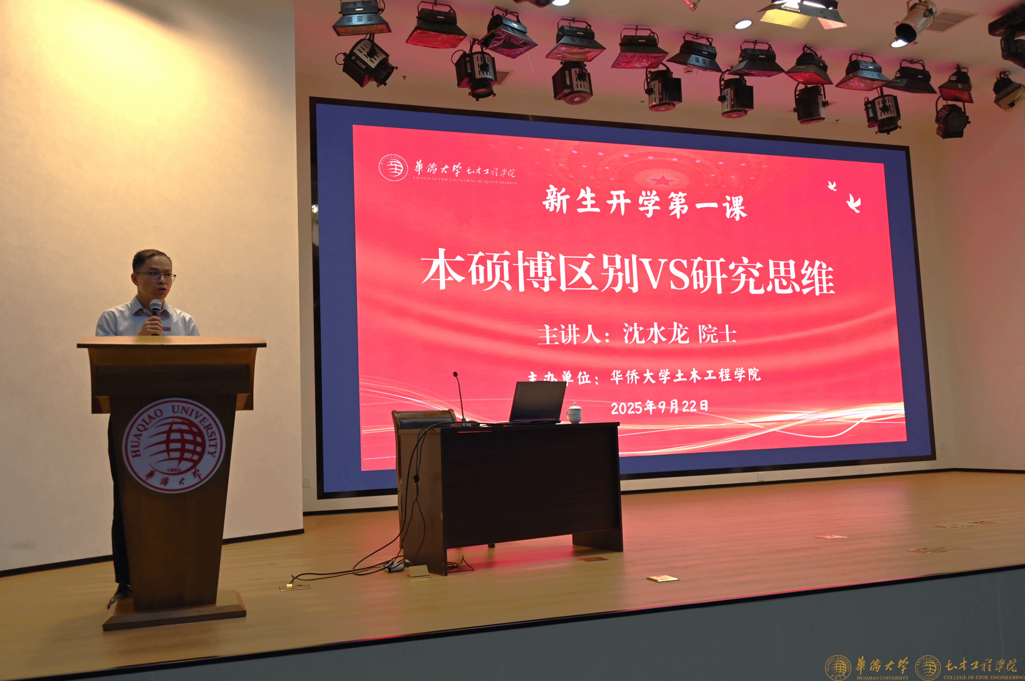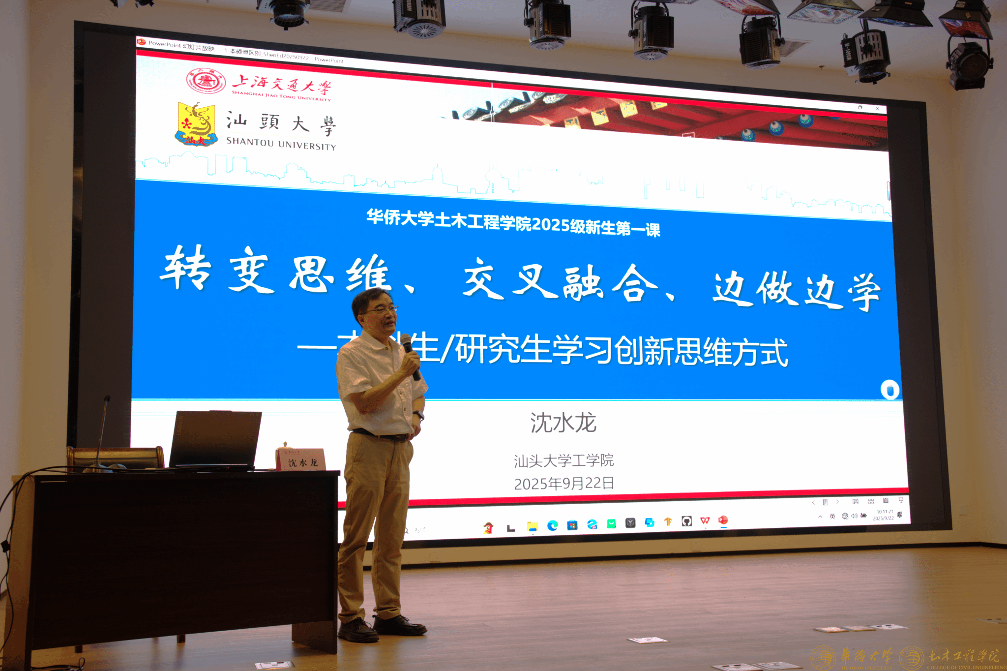 9月22日上午,yl23411永利集团针对2025级全体新生开展 “新生开学第一课” 专题讲座,讲座于王源兴国际会议中心 G204 会议室举行。汕头大学工学院院长、欧洲科学院外籍院士沈水龙教授受邀主讲,学院领导、教师代表及 2025 级本研新生参加,副院长蔡奇鹏主持。