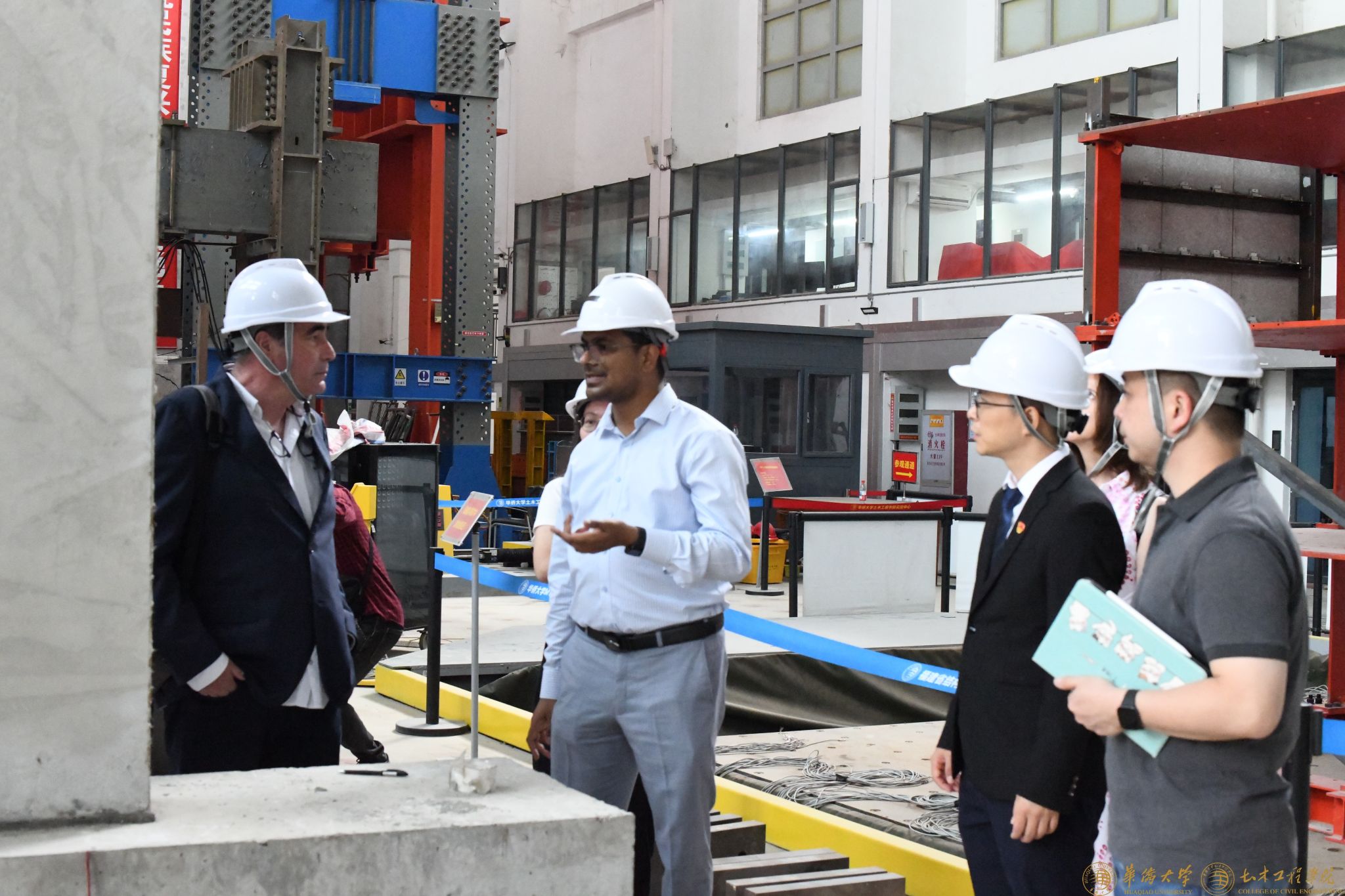 讲座结束后,在蔡奇鹏副院长与Humayun副研究员等的陪同下,阿尔比奥尔教授参观了福建省结构工程与防灾重点实验室,重点参观了3D混凝土打印设备以及大型振动台等设施,进一步了解我院在结构工程、智慧监测、地下空间等方向的研究平台与实验条件。