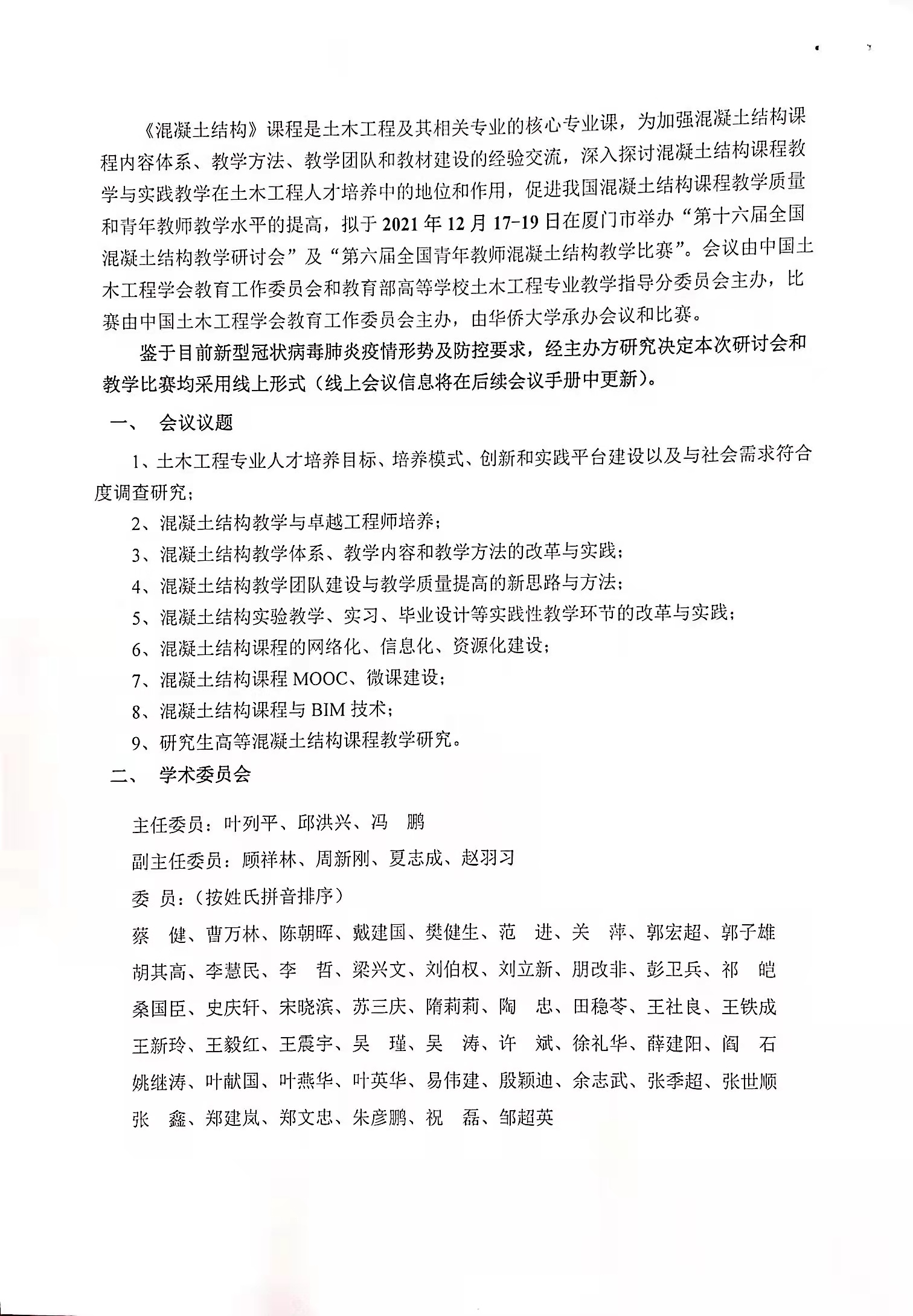 下一篇: 会议预告:第十六届全国混凝土结构教学研讨会暨第六届全国青年教师混凝土结构教学比赛会议通知(第三号)